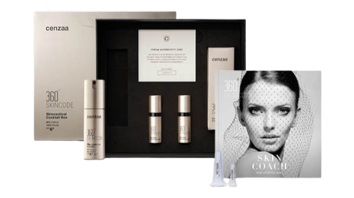 Jouw voordeel: korting op de kuur, gratis 2 miniaturen, Skin Coach boek in een mooie box en stijlvolle Cenzaa tas